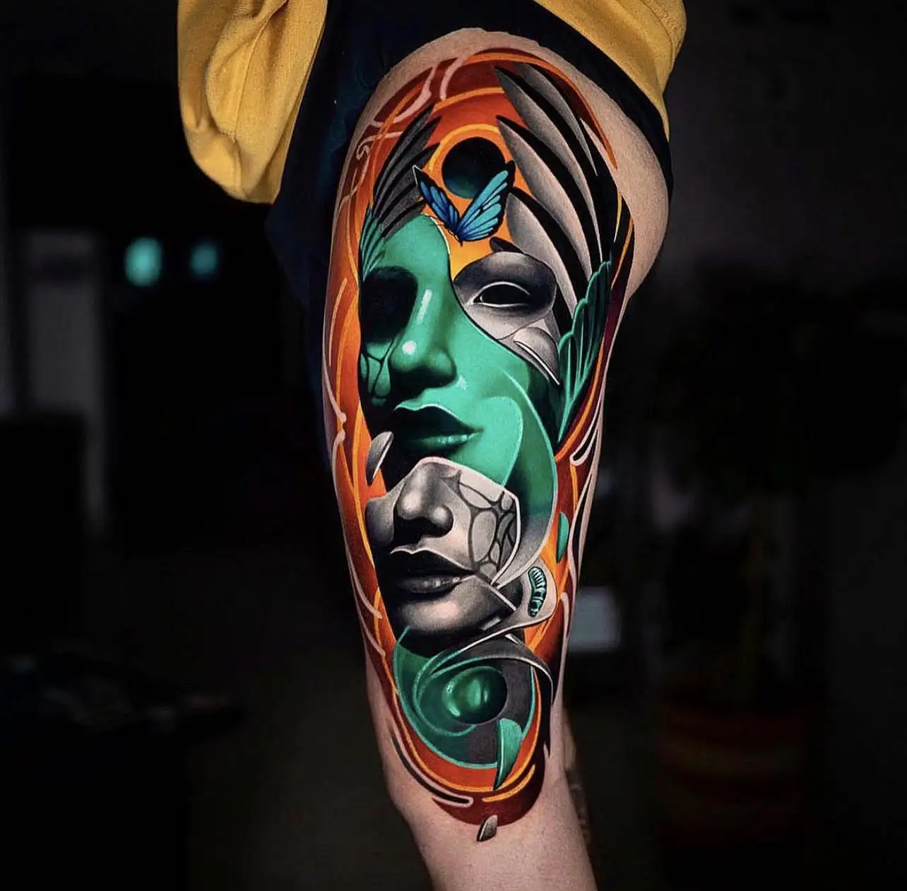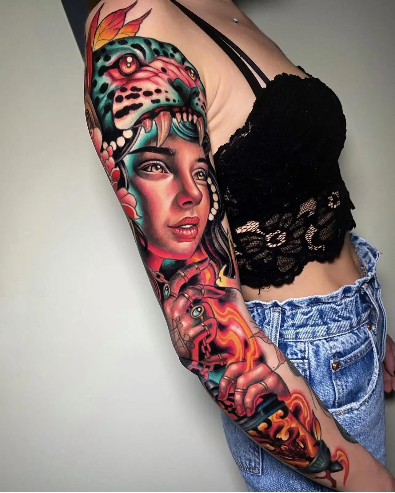 Von realistischen Porträts über Naturmotive bis hin zu abstrakten oder surrealen Designs – wir gestalten dein Tattoo individuell, detailreich und ausdrucksstark. Unsere Fullcolor Artists arbeiten mit einem geschulten Blick für Farbabstimmung und Stilrichtungen wie Neotraditional oder Anime-Tattoos.