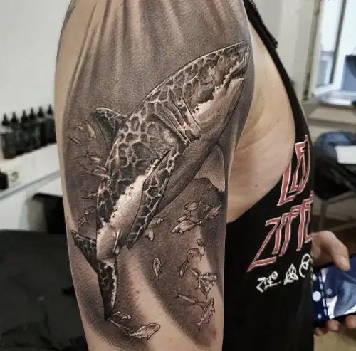 Tattoo Artist Nelson – Spezialist für fotorealistisches Black & Grey. Nelson beherrscht die Kunst des Schwarz-Weiß-Realismus bis ins kleinste Detail. Seine Tattoos wirken fast wie Fotografien – lebendig, ausdrucksstark und voller Tiefe. Mit feinen Schattierungen und präziser Technik erzeugt er eine beeindruckende räumliche Wirkung, die seine Motive beinahe dreidimensional erscheinen lässt. Ob emotionale Porträts, realistische Szenen oder symbolische Motive: Nelson bringt Bildwelten auf die Haut, die berühren und faszinieren. Wer ein Tattoo mit maximaler Präzision, Tiefe und realistischer Wirkung sucht, ist bei ihm in besten Händen.