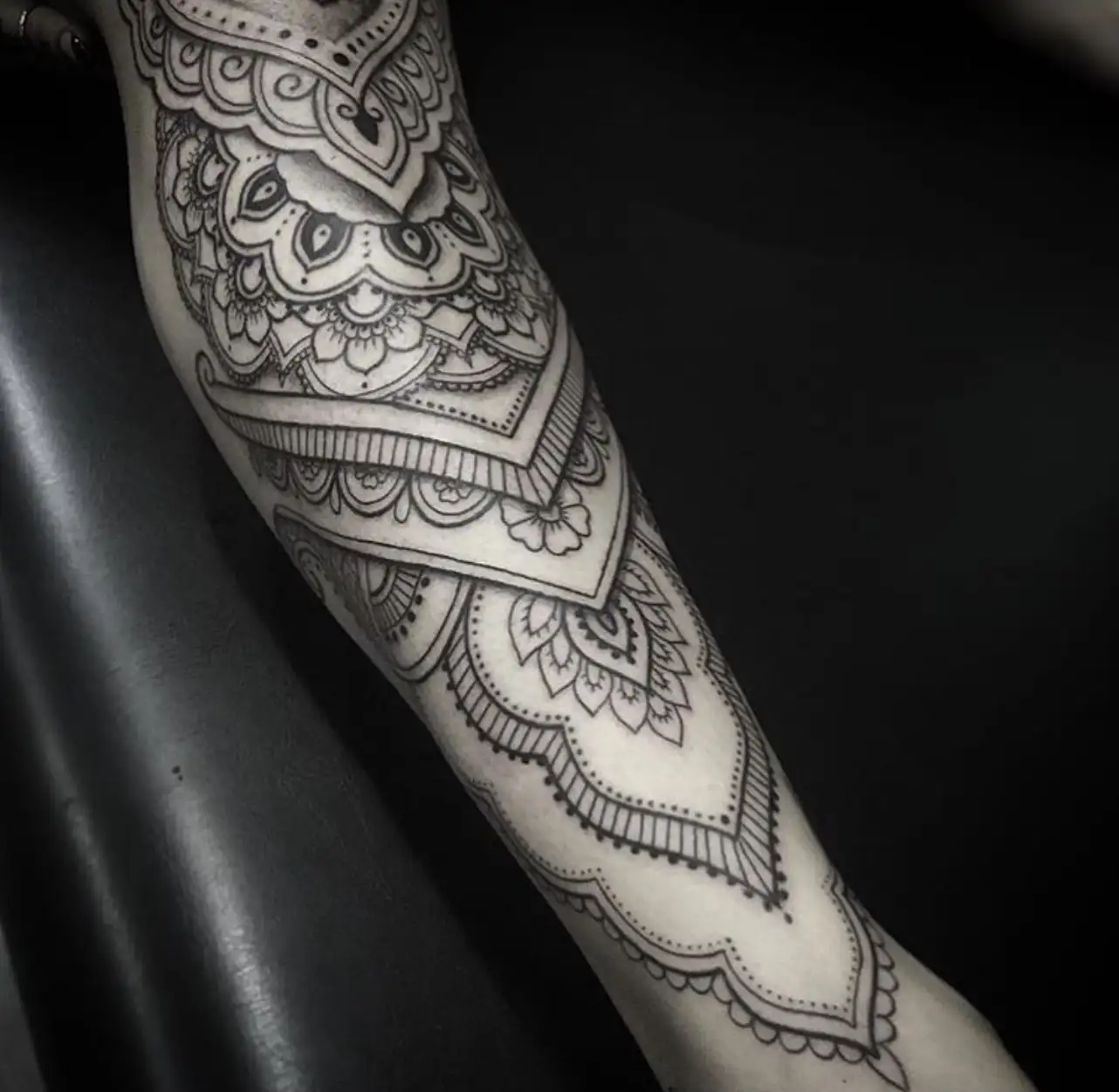Raff beherrscht die Kunst geometrischer Präzision und spiritueller Symbolik. Seine Mandala- und Maori-Tattoos zeichnen sich durch exakte Linienführung, harmonische Symmetrie und eine beeindruckende Liebe zum Detail aus. Mit großem Respekt gegenüber kulturellen Ursprüngen gestaltet Raff Motive, die weit über reine Optik hinausgehen. Ob filigrane Mandala-Elemente oder traditionelle Maori-Symbole – jedes Tattoo wird sorgfältig geplant und mit technischer Präzision gestochen. Wer Wert auf stilvolle Gestaltung mit tiefer Bedeutung legt, findet in Raff den idealen Tätowierer.